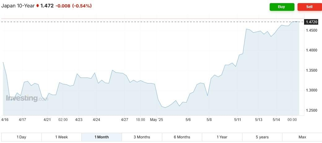 Taux Japon 10 ans (important en ce qui concerne le risque de débouclage de carry-trade) :