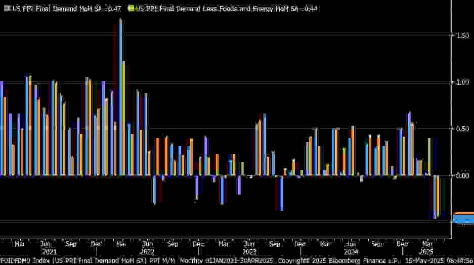 Liz Ann Sonders – Charles Schwab & co : « L’IPP d’avril affiche une inflation de +2,4 % en glissement annuel, contre +2,5 % attendu et +3,4 % précédemment (révisé en hausse depuis +2,7 %) ; l’IPP de base est à +3,1 %, contre +4 % précédemment (révisé en hausse depuis +3,3 %). »